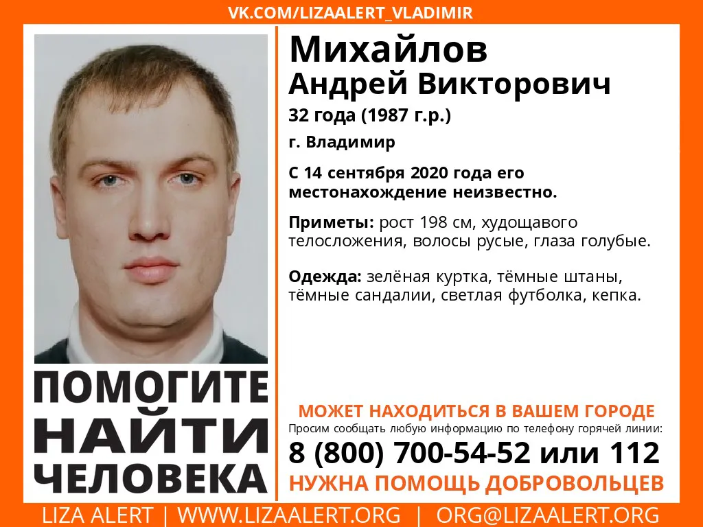 Активисты ПСО "Лиза Алерт" объявили в розыск 32-летнего жителя Владимира Андрея Михайлова. Как сообщают волонтеры поисково-спасательного отряда, мужчина пропал в понедельник, 14 сентября.