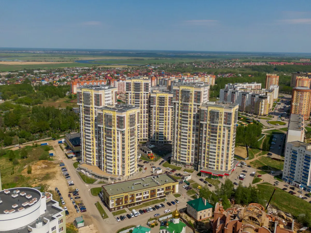 Жилой комплекс построен в Дашково-Песочне на холме над прудами — это самая высокая точка города. С верхних этажей открываются грандиозные виды: заливные луга Оки, панорама города как на ладони — дух захватывает от ощущений. Здесь можно устраивать романтические вечера и с бокалом шампанского любоваться закатом или начинать свой день с чашки ароматного кофе, наслаждаясь невероятными рассветами.