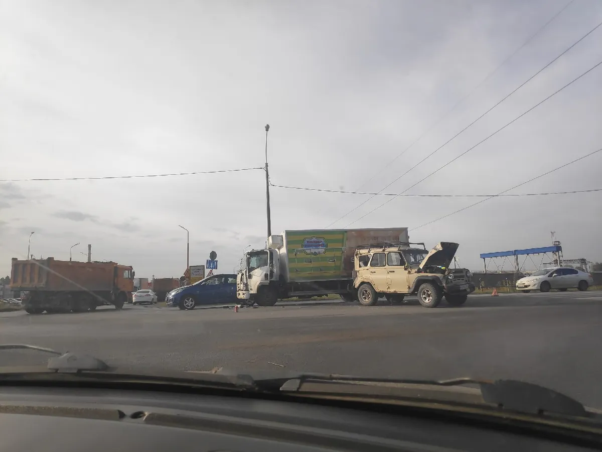 Заперли в пробке: в Никуличах столкнулись грузовик и “УАЗик”