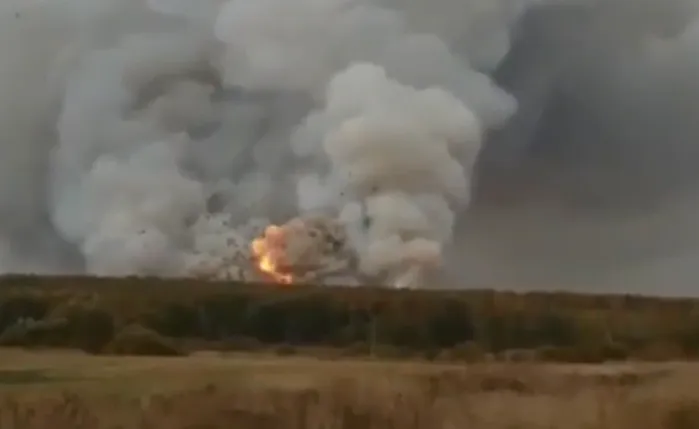 Минобороны РФ: 7 октября текущего года около 13.20 на территории склада хранения боеприпасов Западного военного округа в районе населенного пункта Желтухино Рязанской области, произошло возгорание травы. Порывистым ветром огонь перекинулся на площадку хранения артиллерийских боеприпасов. Штатному пожарному расчету воинской части остановить возгорание не удалось. Совместно с прибывшими пожарными расчетами МЧС осуществляется организованная локализация и тушение пожара. В настоящее время на технической территории воинской части отмечаются отдельные взрывы боеприпасов.