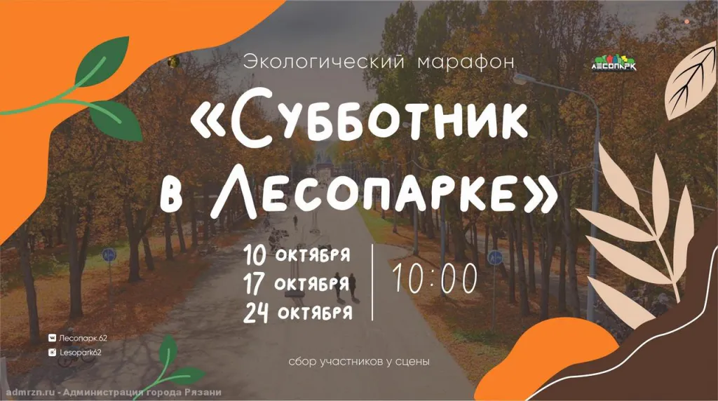 В октябре сотрудники МАУК города Рязани "Лесопарк" традиционно организуют на территории парка экологический марафон "Субботник в Лесопарке".