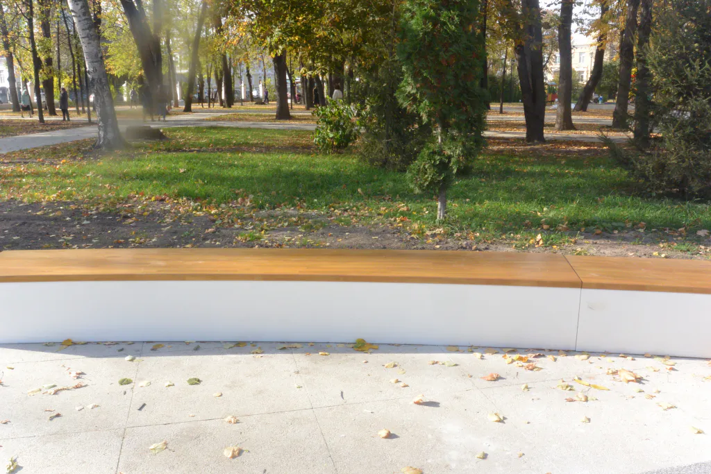 В Наташкином парке установили светящиеся лавочки, которые зажигаются вместе с уличным освещением. Также дорожки замостили плиткой трех цветов, установили пандус и лестницу, спилили некоторые деревья.