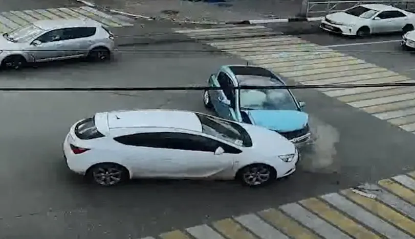 Оба автомобиля получили механические повреждения. Кроме того, на кадрах видно, как из под капота одной из машин пошел дым.