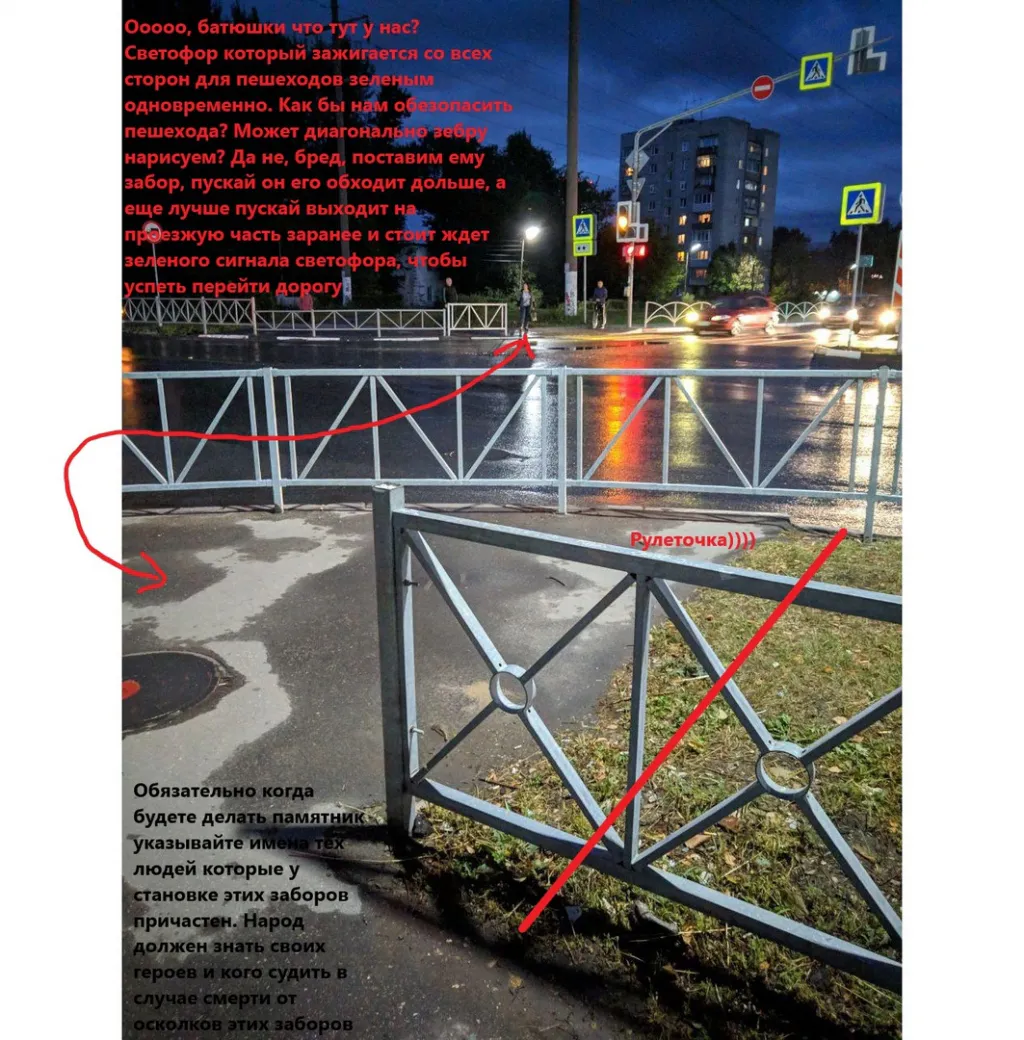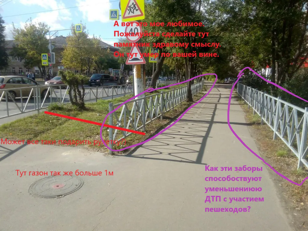 Власти сослались на предписание ГИБДД и что ограждения - часть обустройства города. Якобы установка таких заборов актуальна и повлияет на снижение аварийности по вине пешеходов, то есть выполнение демонтажных работ нецелесообразно.