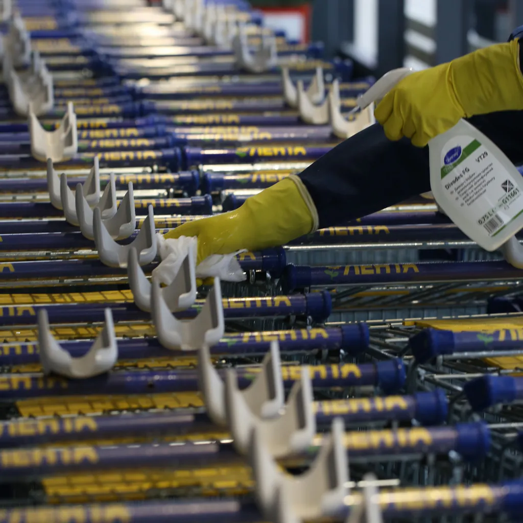 В условиях пандемии крупные торговые сети пристально следят за соблюдением всех санитарных норм. Например, в «Ленте» в течение дня проводится постоянная дезинфекция помещений и всех контактных поверхностей, включая тележки, весы, терминалы оплаты и т. д. Для улучшения циркуляции воздуха компания изменила режим работы вентиляционных систем, а в некоторых магазинах даже появились бесконтактные установки для дезинфекции тележек сухим туманом. Так же серьезно в «Ленте» относится и к здоровью сотрудников - проводят регулярный замер температуры, следят за дезинфекцией рук и проверяют обязательное ношение масок и перчаток.