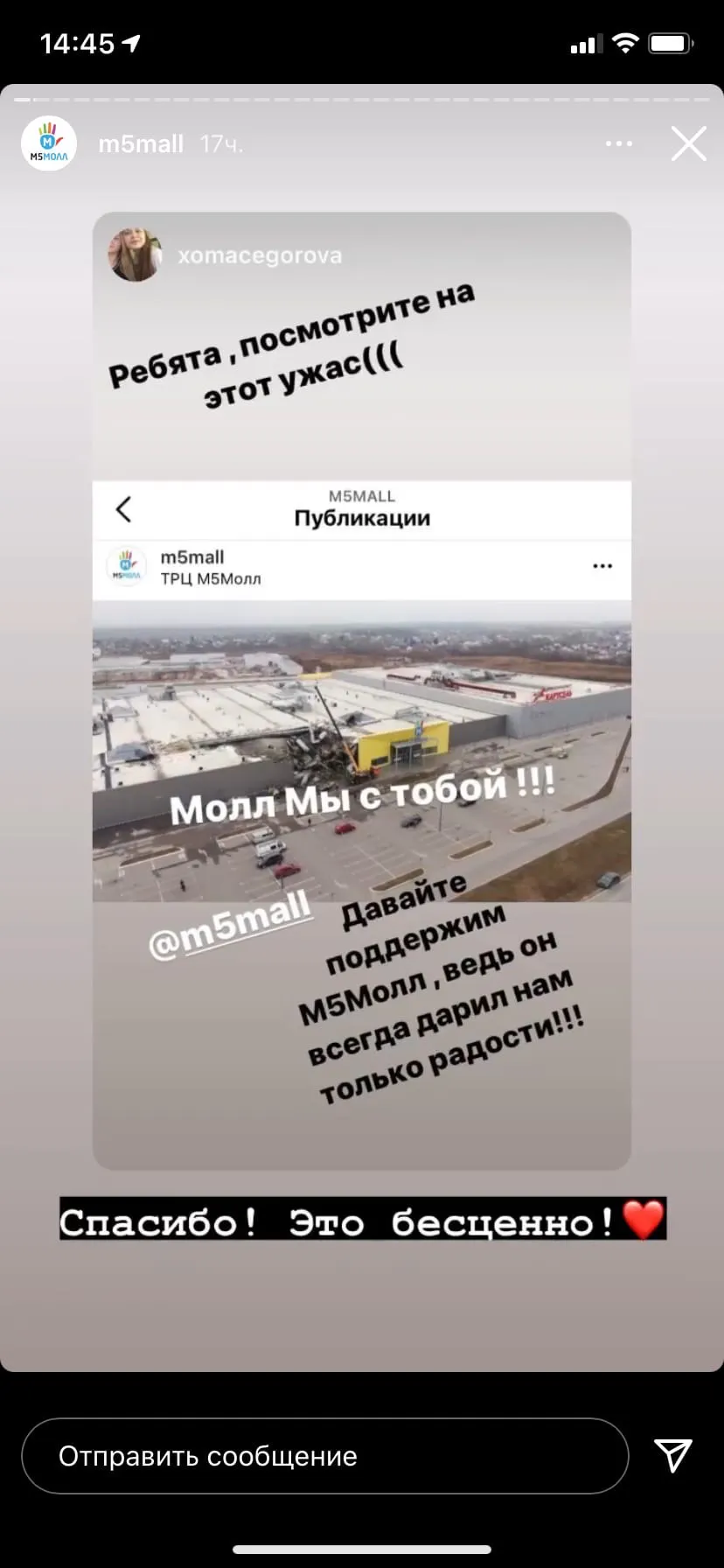 Руководство торгового центра благодарит людей за поддержку, тмечая,  что такие слова очень важны для работников ТРЦ.
