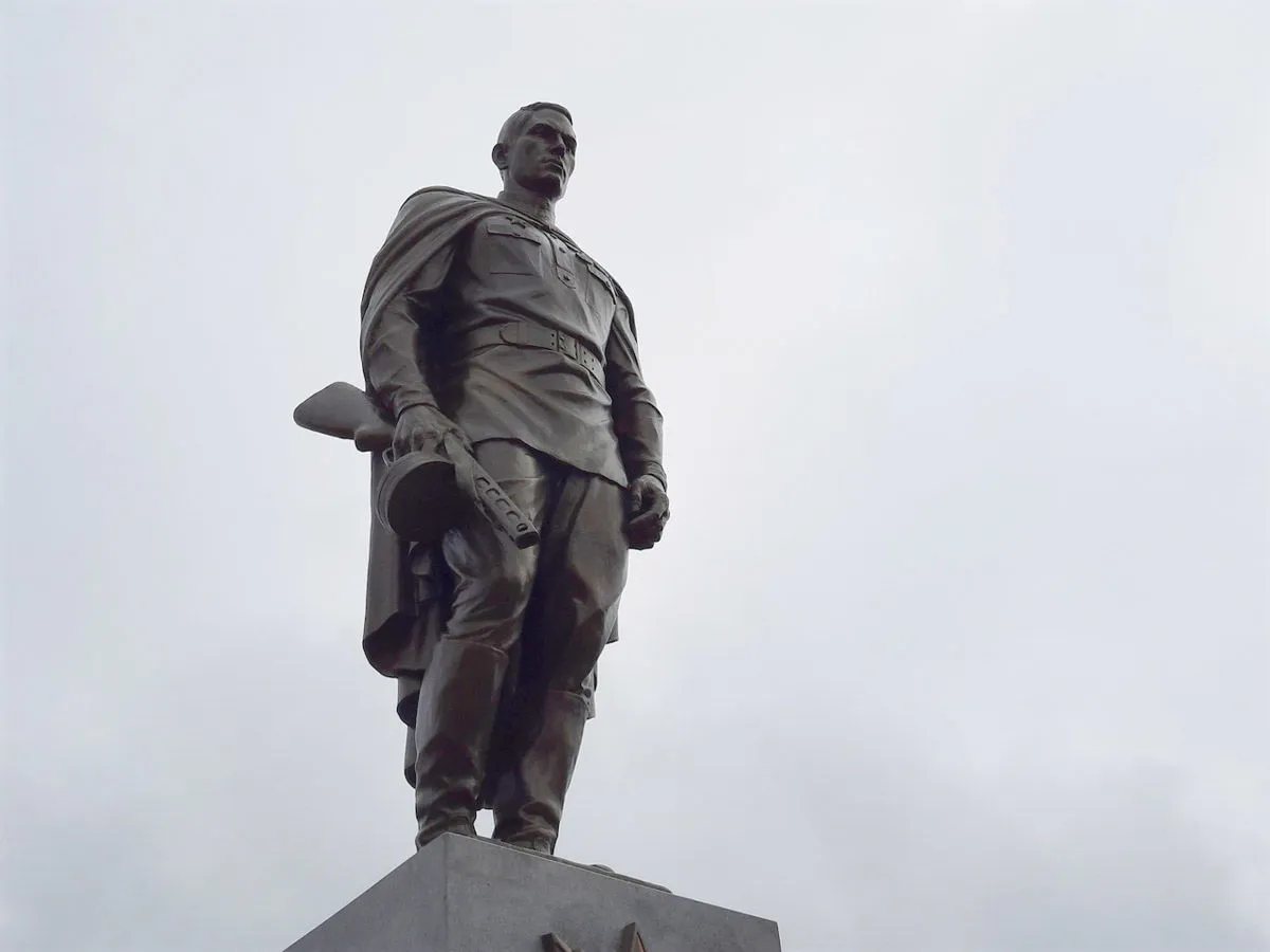«Это молодой парень в солдатской гимнастерке, только-только похоронивший и оплакивающий друзей, погибших в бою с фашистами, — такова была задумка», — рассказал автор о своей работе.