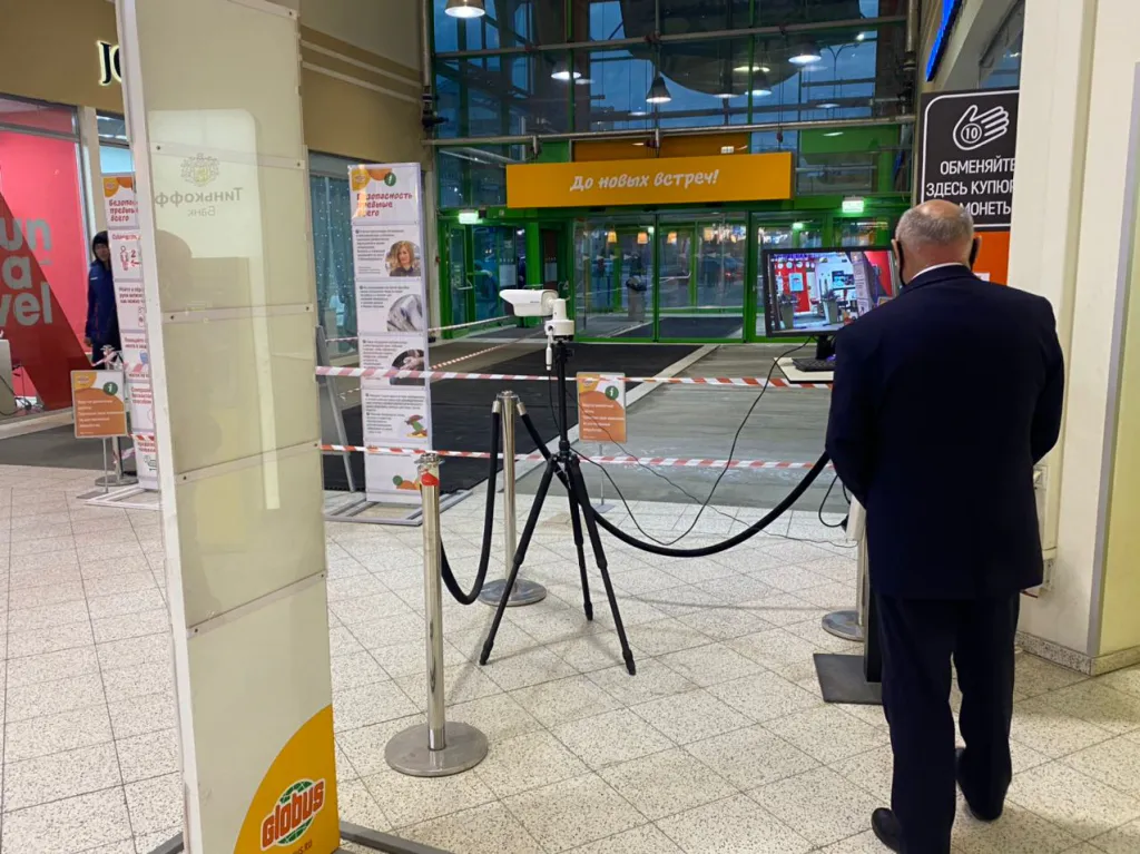 На входе в рязанских гипермаркет “Глобус” установили тепловизоры для измерения температуры. Известно, что на тест их запустили на днях.