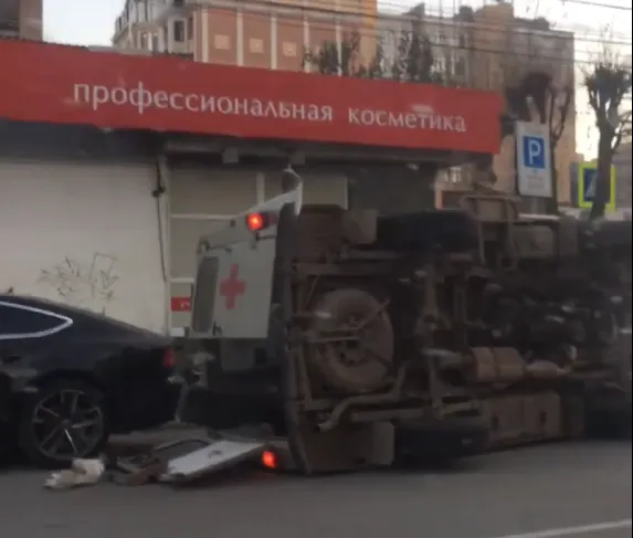 У ТЦ “Атрон” перевернулась скорая. Видео в редакцию прислал очевидец.