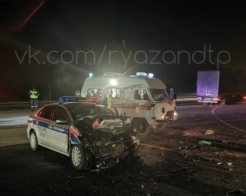 Есть пострадавшие: под Рязанью полицейская машина врезалась в иномарку