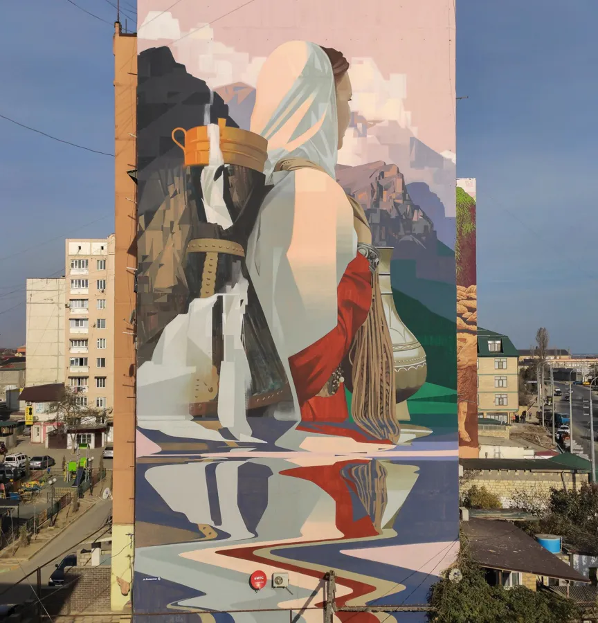 Красота: рязанский художник создал масштабное граффити в Дагестане