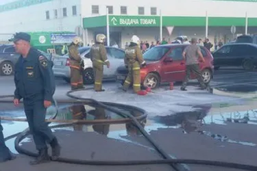 Около восьми часов вечера возле "Леруа Мерлен" загорелась "Лада Калина". На месте пожара работали сотрудники МЧС.