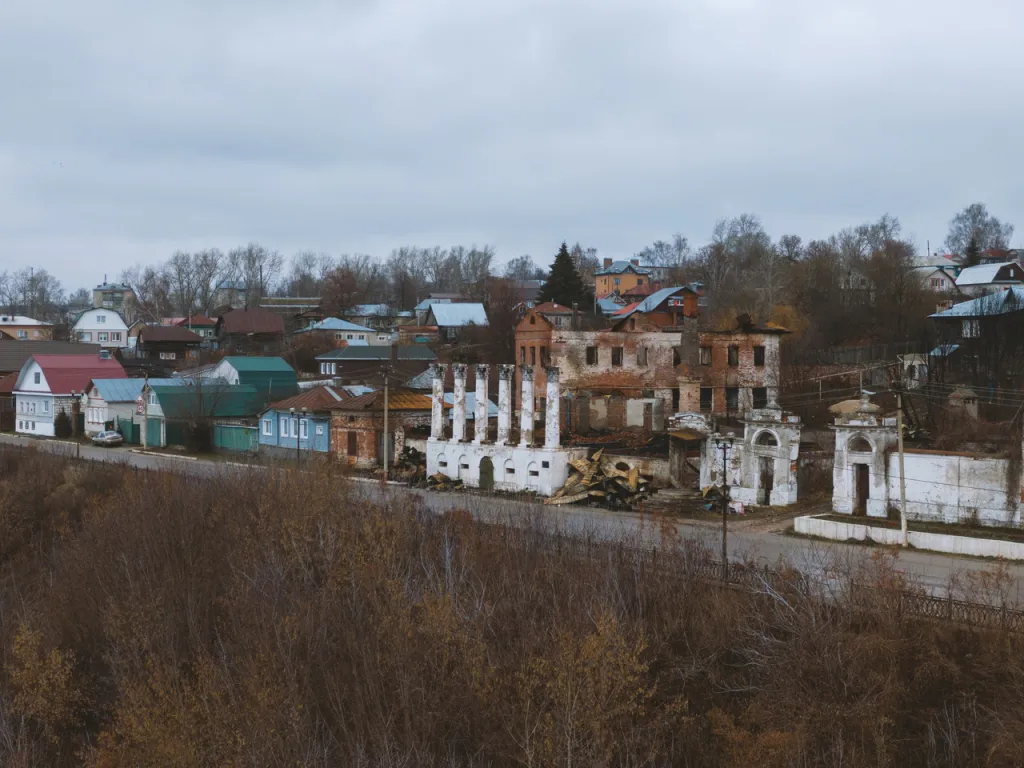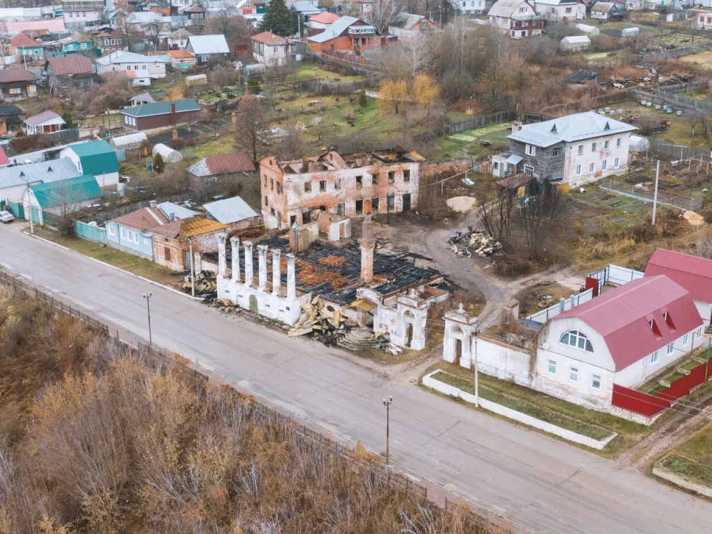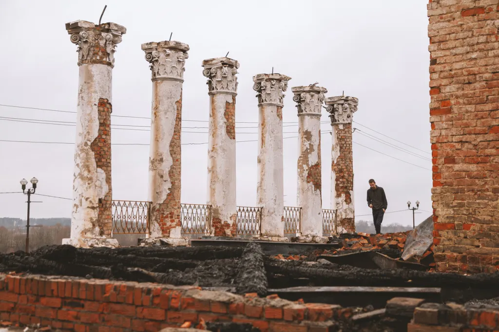 Рязанский фотограф Евгений Григоркин запечатлел памятник федерального значения после пожара, который произошел ночью, 20 ноября. На фотографиях видно, как от здания остались лишь сгоревшие доски, горы обвалившихся кирпичей и шесть колонн.