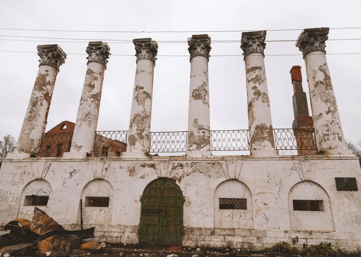 - Шесть колонн, как памятник истории, напоминающих о былом величии двухсотлетней усадьбы или “объекта культурного наследия федерального значения”, до которого никому не было дела, - прокомментировал  Евгений.