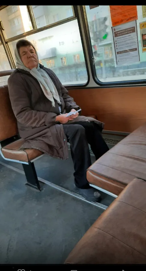 Женщину зовут Адилия. Ее сфотографировали в автобусе. Автор поста утверждает, что пенсионерка невнятно разговаривает и плохо ходит. Выяснилось, что она лежала в больнице имени Семашко, так как была парализована.