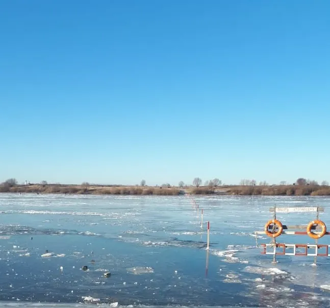 Перед тем, как официально разрешить пешеходное движение, уполномоченные должностные лица проверили толщину и прочность льда, состояние выхода к переправе с берега, наличие необходимых знаков и спасательного оборудования.