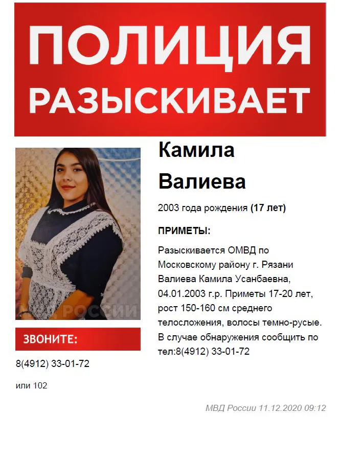 В Рязани пропала 17-летняя Камила Усанбаевна Валиева. Об этом сообщает пресс-служба регионального УМВД.