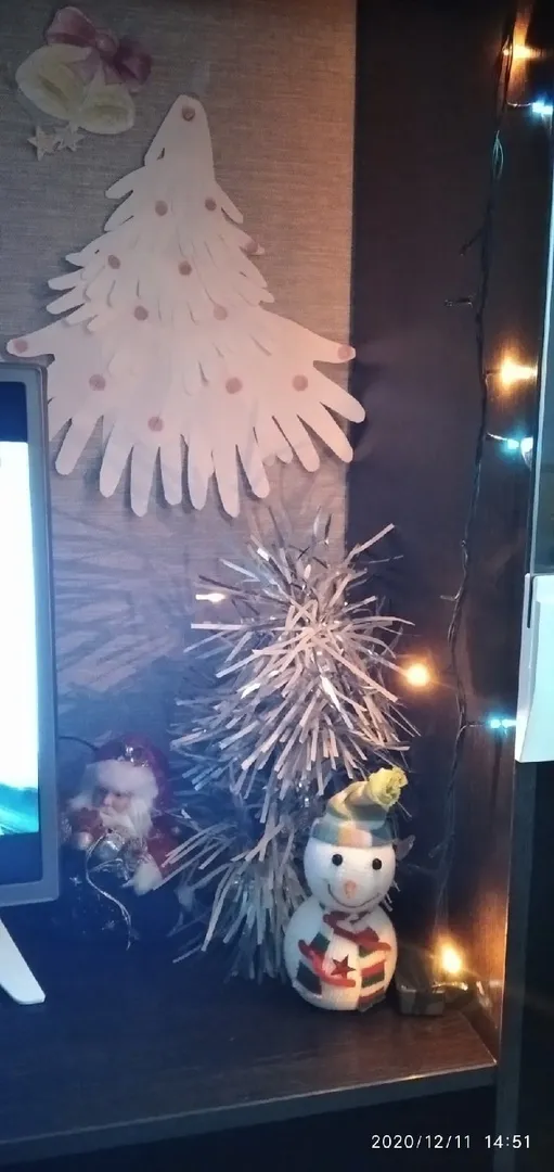 Николаева Анна. Елка из "ладошек" и Снеговичок.