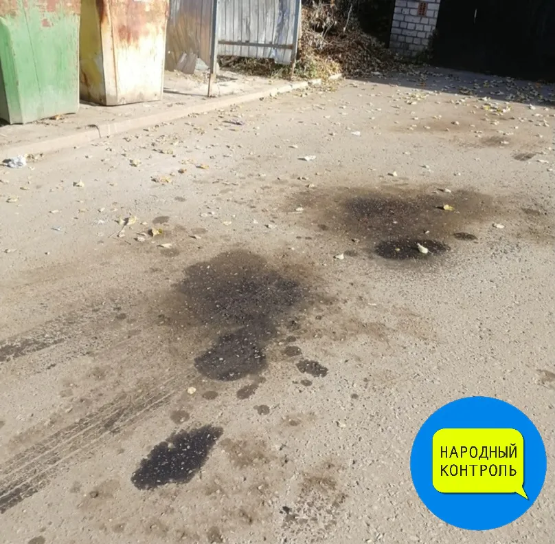 Рязанцы активно жаловались на пятна машинного масла на асфальте, которые оставляет после себя мусоровоз. После вывоза содержимого помойки, на асфальте появляются следы, из-за которых невозможно подойти к бакам. Оператор вывозит мусор ежедневно, из-за этого масляное пятно со временем превращается в большую лужу.