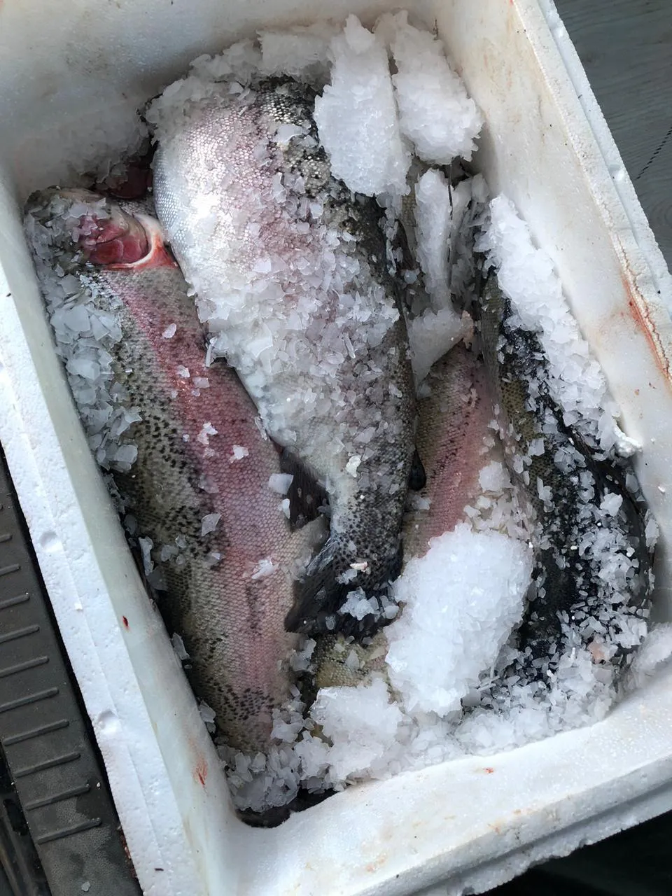 - Охлажденную карельскую форель. Вес рыбы - 3 килограмма, стоимость 670 рублей за килограмм, 80% рыбы - с икрой