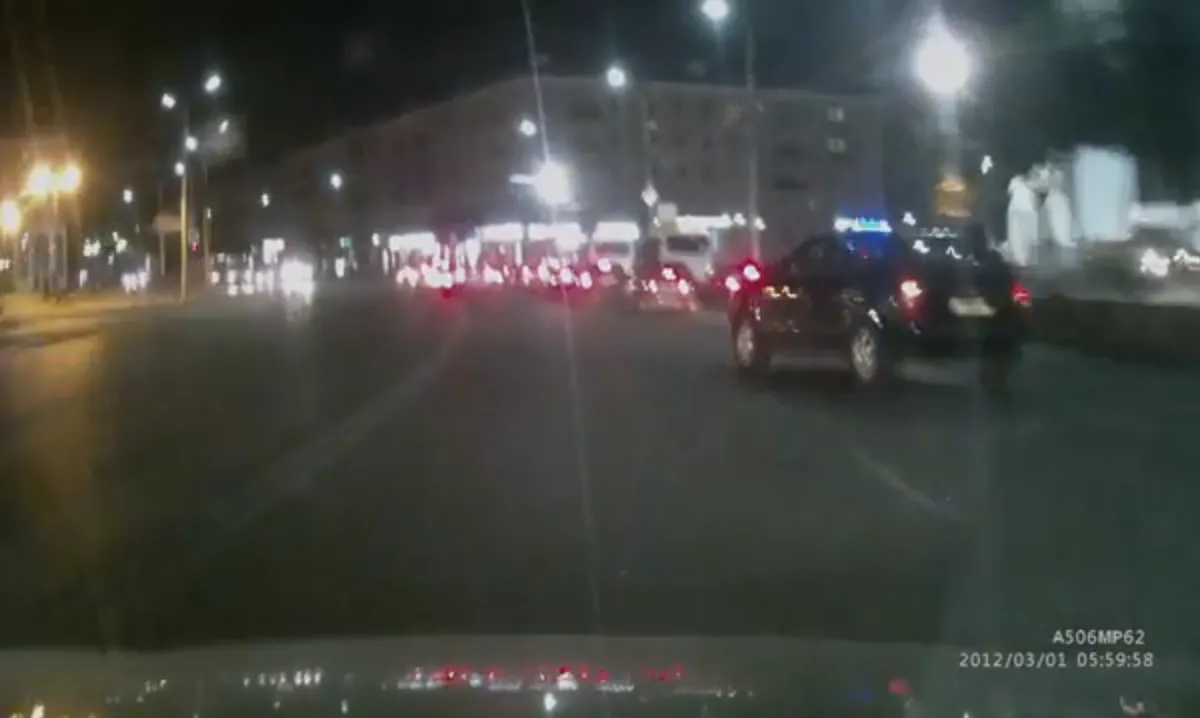 В социальных сетях разместили видео, где рязанец в последний момент увернулся от столкновения с внедорожником на площади Победы.