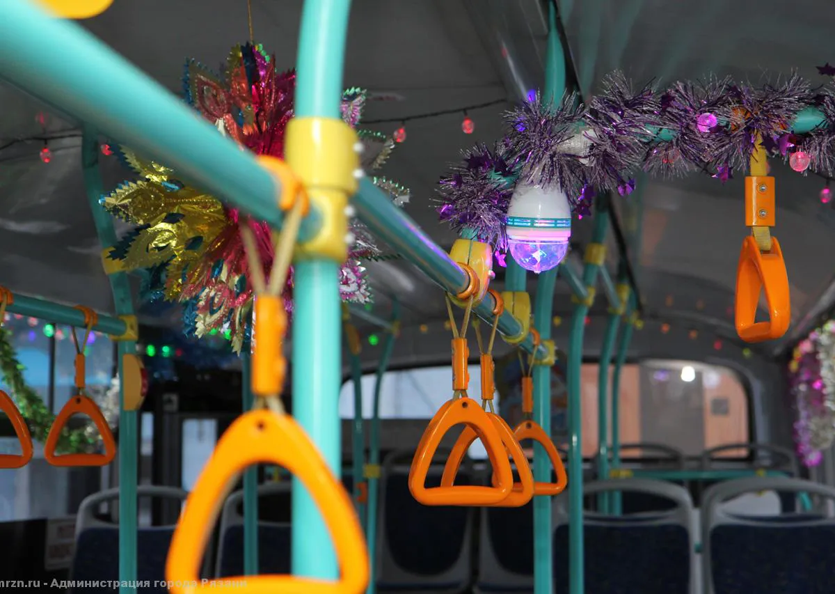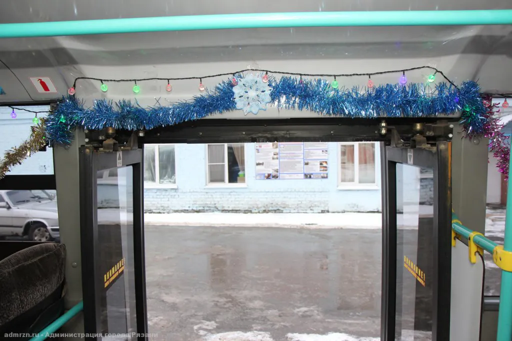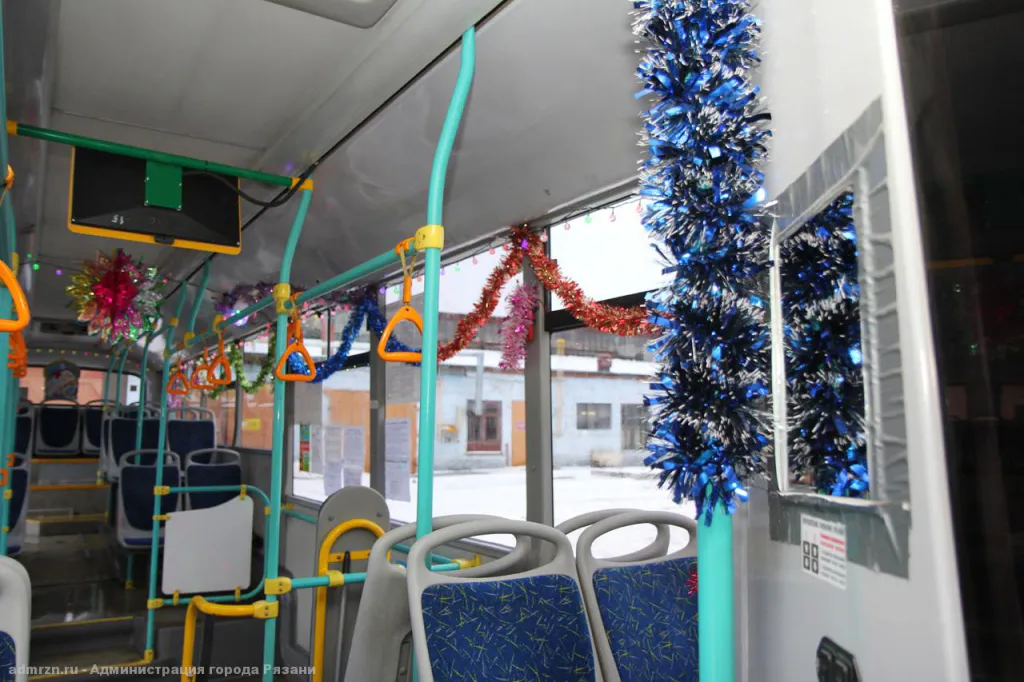Атмосферно: рязанские автобусы украсили гирляндами и мишурой