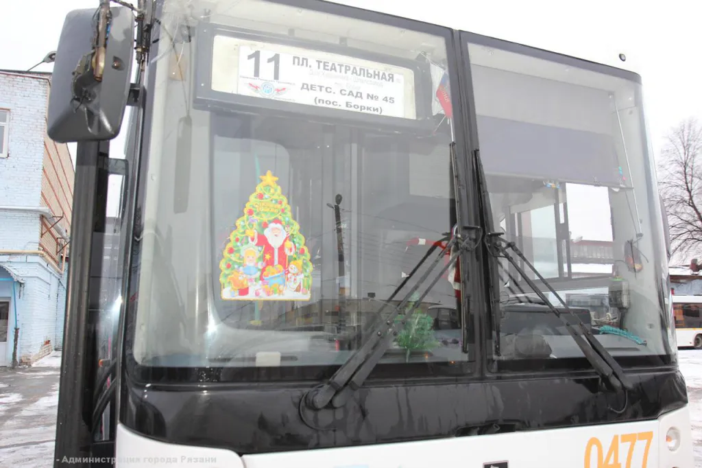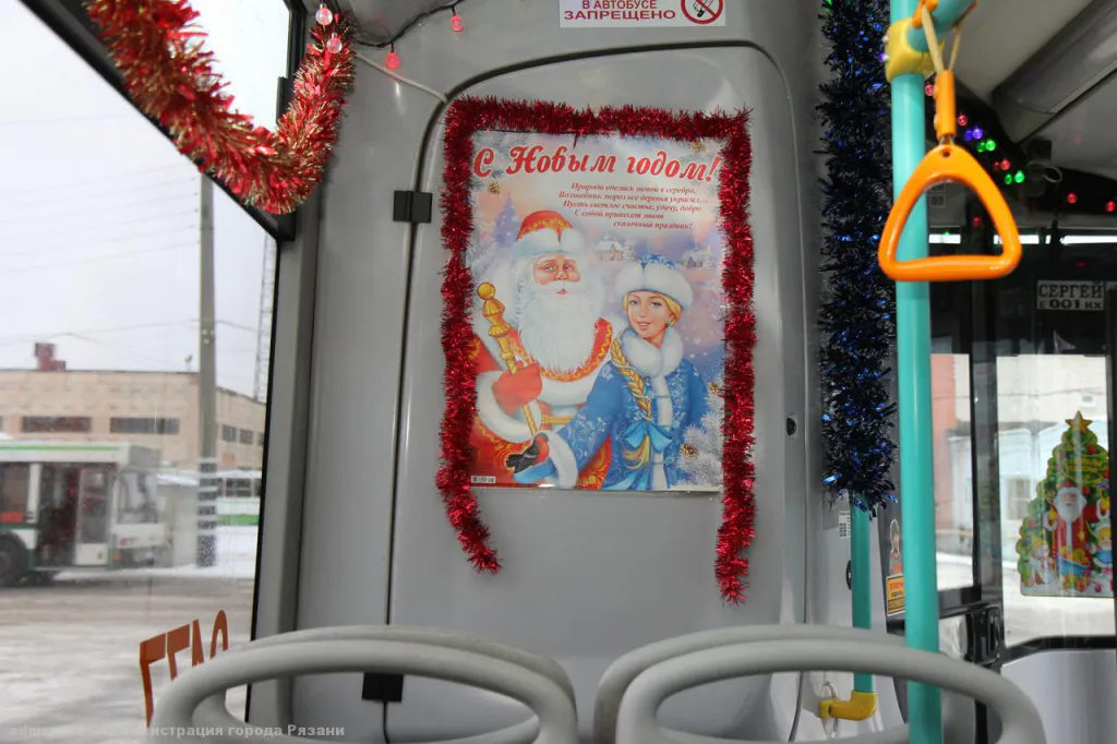Рязанские автобусы украсили гирляндами и мишурой, сообщает мэрия.