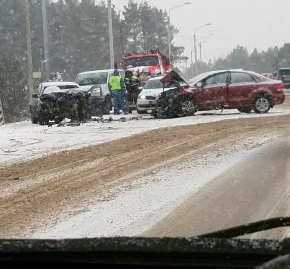 Сегодня из-за снегопада произошло ещё две аварии. В центре Рязани легковушка врезалась в автобус. А ещё  иномарка улетела под мост на Голенчинском шоссе.