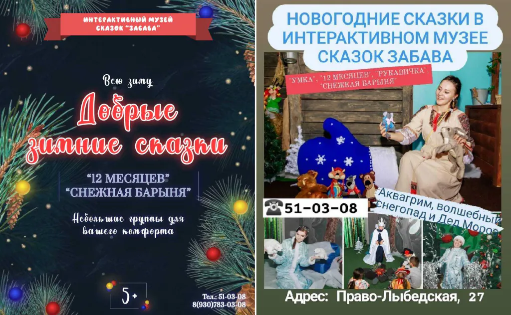 Пандемия коронавируса внесла свои корректировки в празднование Нового года. Масштабных гуляний в Рязани не планируется, а праздничных мероприятий вообще кот наплакал. Чтобы все же создать ребенку новогоднее настроение, мы собрали подборку интерактивных спектаклей, которые дадут в зимние каникулы в музее сказок «Забава».