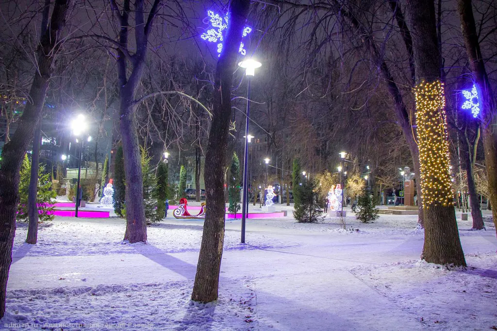 В преддверии праздников в “Наташкином” парке уже установили трехметровые фигуры Деда Мороза и Снегурочки, двух медведей, держащих елочную арку, снеговиков-музыкантов, светящийся фонтан, сани новогоднего волшебника, мешок и большой подарок с бантом, а также 25 снежинок.