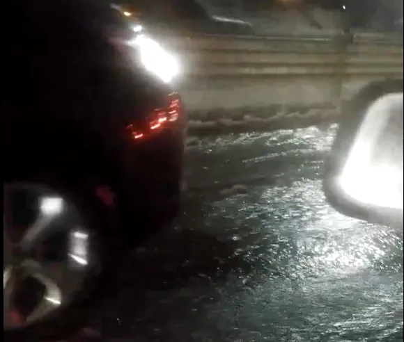 В соцсети появилось видео, на которой видны последствия прорыва. На Северной окружной случилось ДТП с двумя машинами: ВАЗ-2112 и “Рено Дастер”. На месте работали сотрудники ГИБДД.