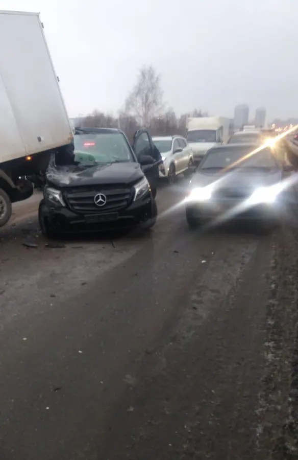 На Солотчинском шоссе в Рязани произошла массовая жесткая авария. Столкнулись сразу три машины: большегруз, "Газель" и фургон. Из-за ДТП на выезде из города в сторону Солотчи образовалась огромная пробка.