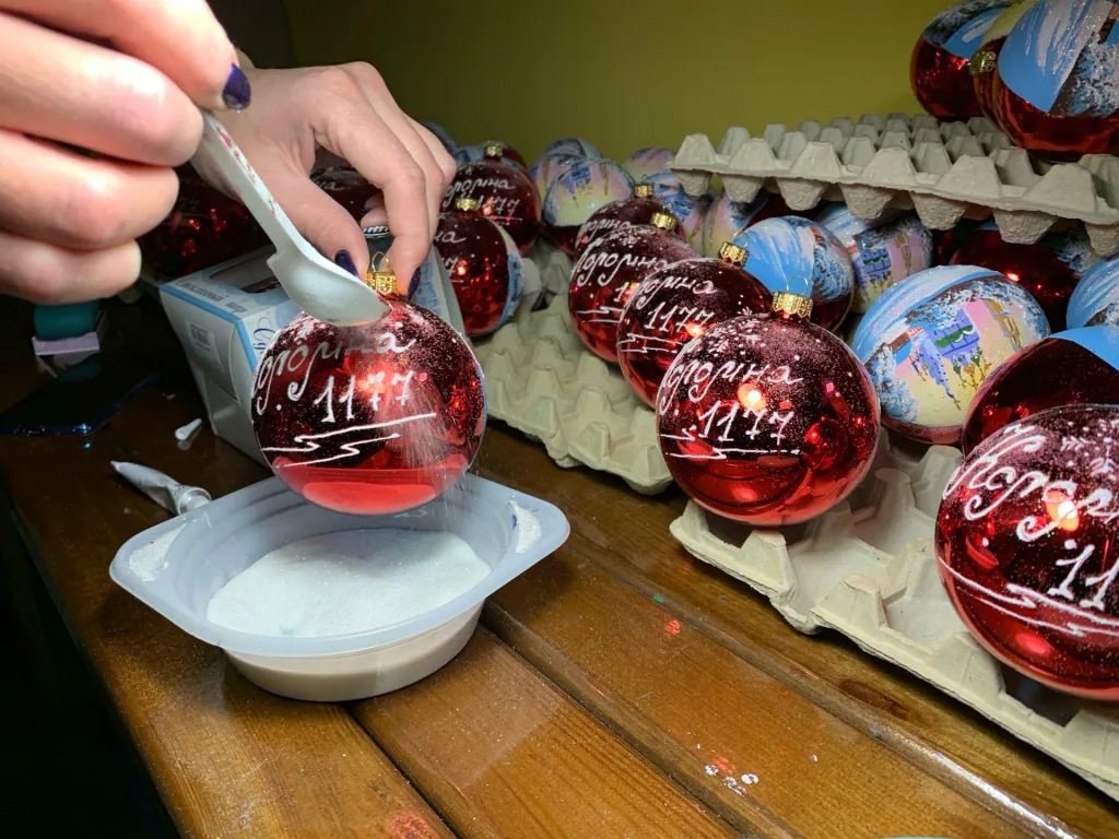 Процесс длится недолго – около семи минут. Само стекло для украшения, рассказывает Максим, стоит немного. Но откуда берутся такие цены на стеклянные елочные игрушки в магазинах? Украшение вырастает в стоимости на этапе обработки, когда мастер наводит финальную красоту. Все начинается с серебрения: