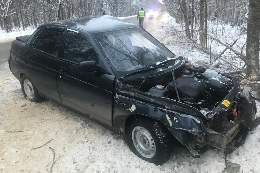 Разорвалось колесо: в Рязанской области ВАЗ врезался в дерево