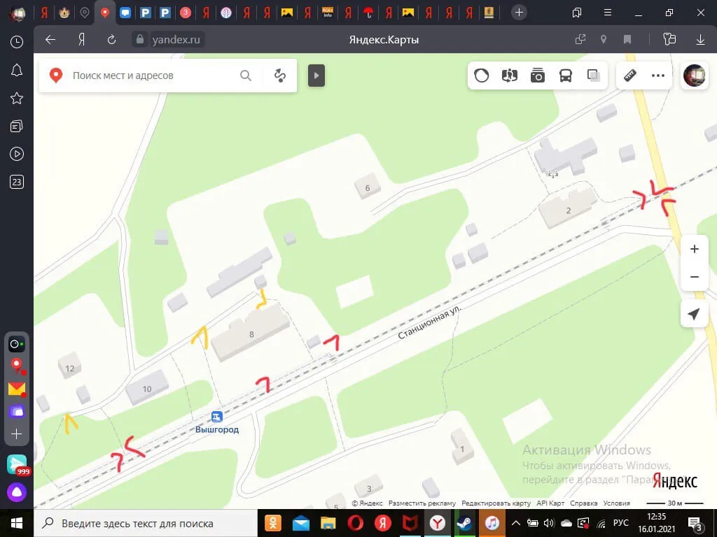 По словам молодого человека, село огромное - в нем имеется сельская библиотека, детский сад, школа, железнодорожная платформа 229 км и станция села Вышгород. Однако, на самой близкой к инфраструктуре улице нет необходимого - света. Читатель прислал нам карту, на которой красным цветом обозначены действующие фонари, а желтым - нерабочие.