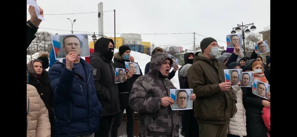 Выкрикивают лозунги: горожане вышли на митинг в поддержку Навального