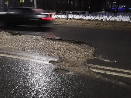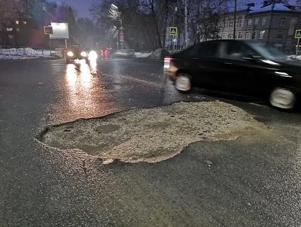 Асфальт сошел вместе со снегом: рязанцы пожаловались на огромную яму в Горроще