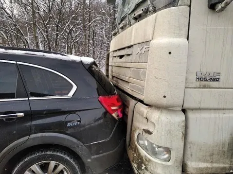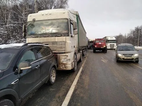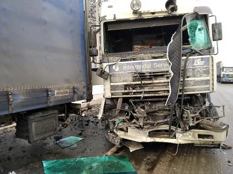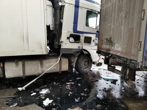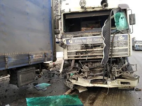 Столкнулись три фуры и легковушка. По данным очевидцев, пострадал минимум один человек. Официальной информации о столкновении пока не поступало. Судя по фотографиям, автомобили сильно пострадали.