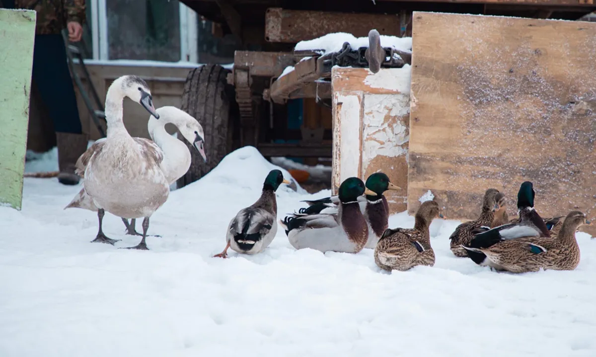 Гуси-лебеди: как в шиловском селе осталась на зимовку пара лебедей