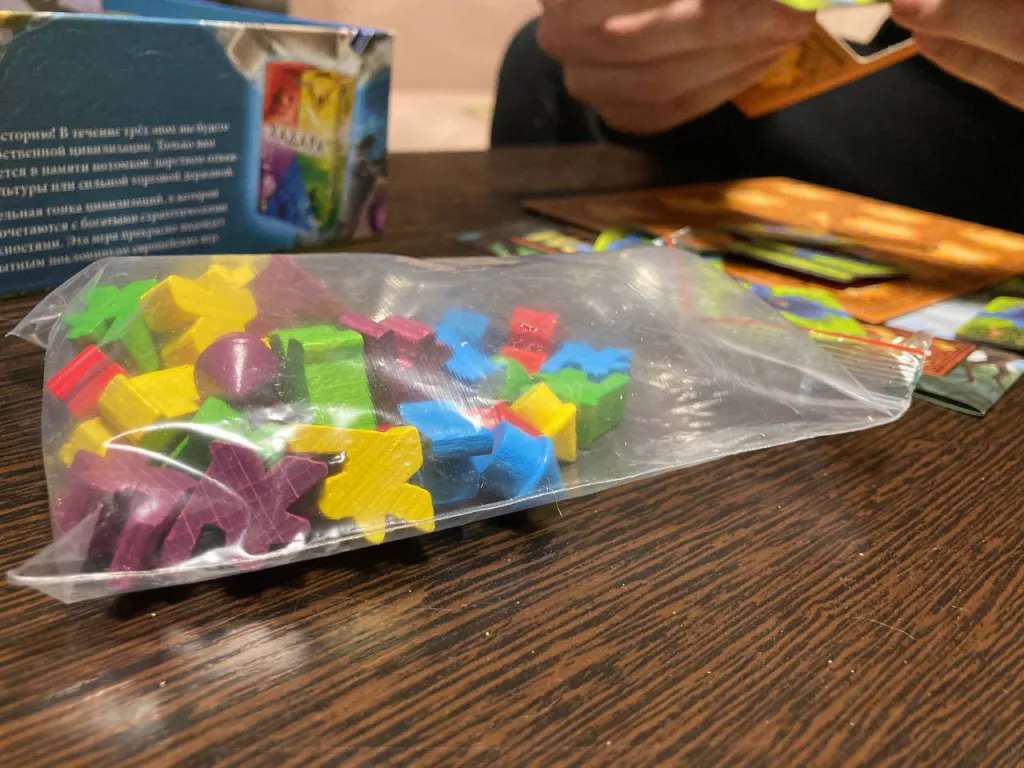 Длительность игры зависит от того, знают ли игроки правила. Если компания впервые играет в эту игру, потребуется некоторое время, чтобы разобраться в подсчете очков. Нам, например, понадобилось примерно полчаса. Зато сам процесс игры довольно быстрый – выкладывай себе карточки, ставь соплеменников, просчитывай ходы. Одна партия занимает примерно минут сорок, но этот показатель зависит от количества игроков. За полтора часа можно спокойно сыграть две партии.