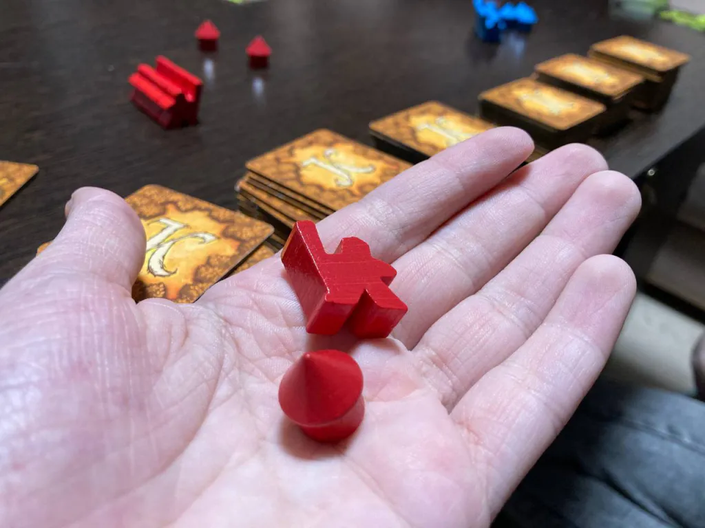 На выложенные квадраты земли игроки ставят своих соплеменников и ставят хижины. Например, игроки могут объявить лес или русло реки своими и получить за это баллы.