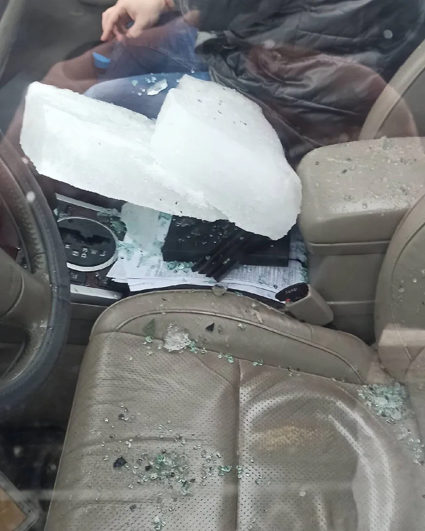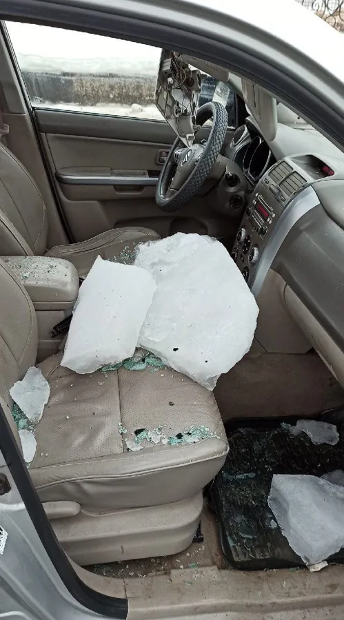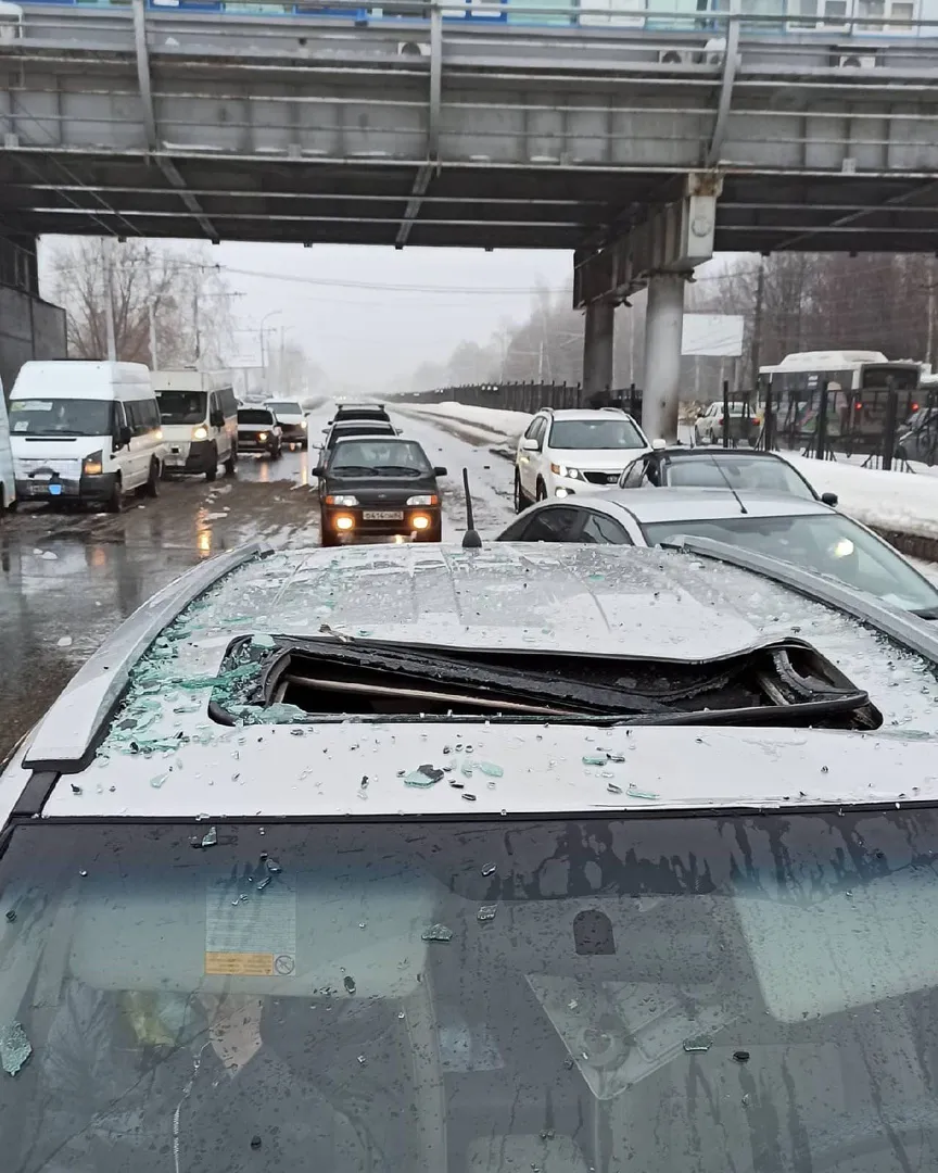 Сегодня утром, 26 февраля, в центре города на машину упала глыба льда. Об этом водитель сообщил в социальных сетях. Инцидент произошел в 8:45, на Московском шоссе. Льдина прилетела с крыши надземного перехода. По словам водителя, есть пострадавшие.