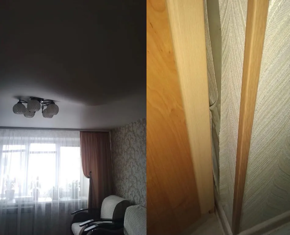 Обращая внимание на снимки, можно увидеть, как от воды провис потолок и в считанные секунды он может порваться. На стенах отходят обои, а полы покрываются плесенью.