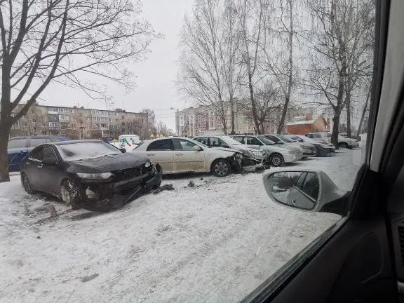 Вместо бамперов - каша: в Рыбном на парковке умудрились протаранить четыре автомобиля