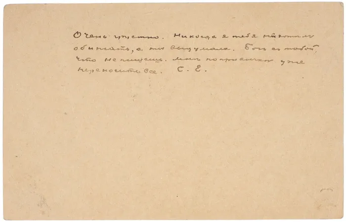 Очень грустно. Никогда я тебя не хотел обижать, а ты выдумала. Бог с тобой, что не пишешь. Мне по привычке уже переносить все. С. Е. - говорится в письме велкого поэта. Это последнее его известное письмо, отправленное Сардановской.