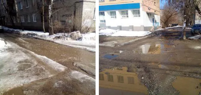 Место, где есть не только море, но и впадины. Улица Крупской в последнее время отличилась. Буквально пару недель назад жители сетовали из-за нечищенных дорожек, теперь снег сошел вместе с дорожками… К боязни пробить колесо у местных жителей появилась еще одна фобия - утонуть.