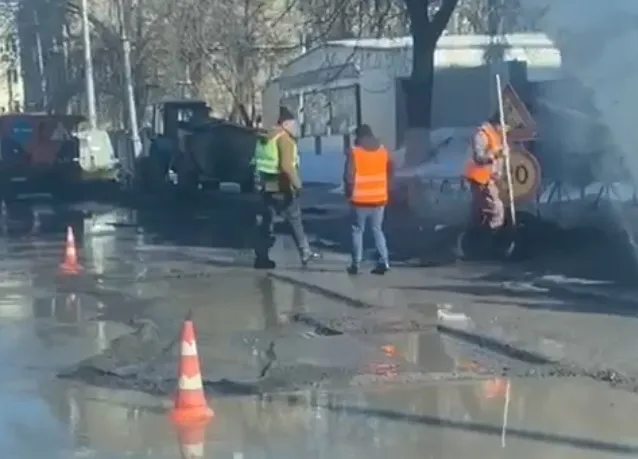 Век технологий: на Новой рабочие укладывают асфальт в лужи