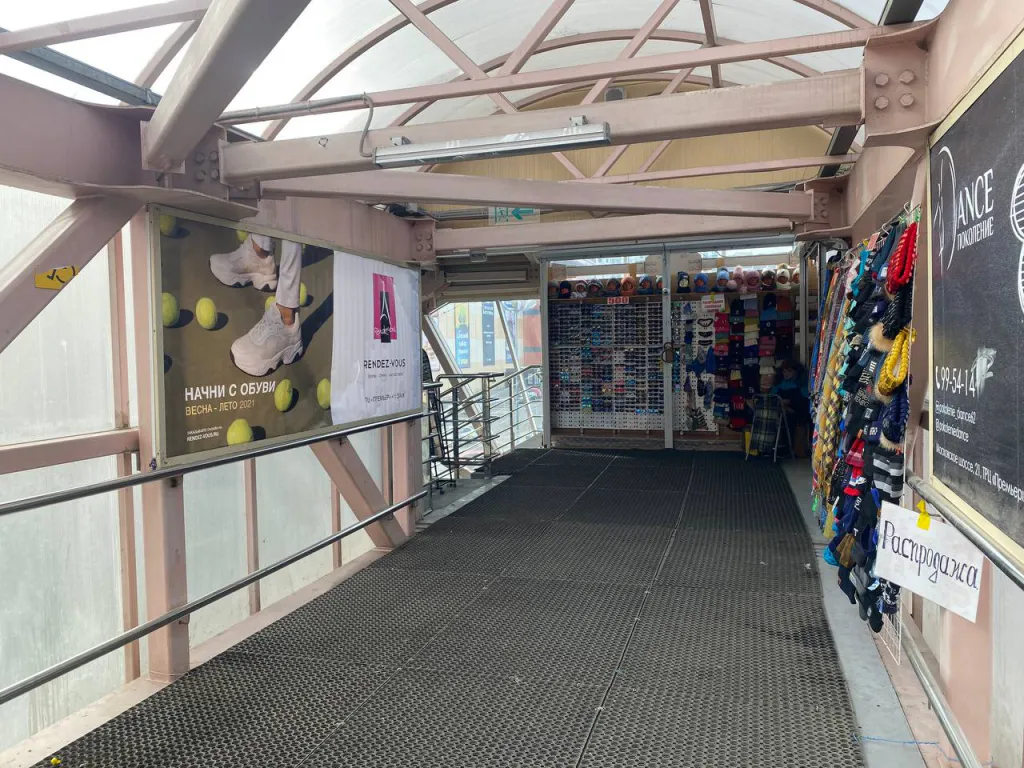 Представляем вашему вниманию надземку у “Ашана”. Переход пользуется популярностью среди посетителей торгового центра - это причина, почему он выглядит очень хорошо по сравнению со своими “коллегами”.