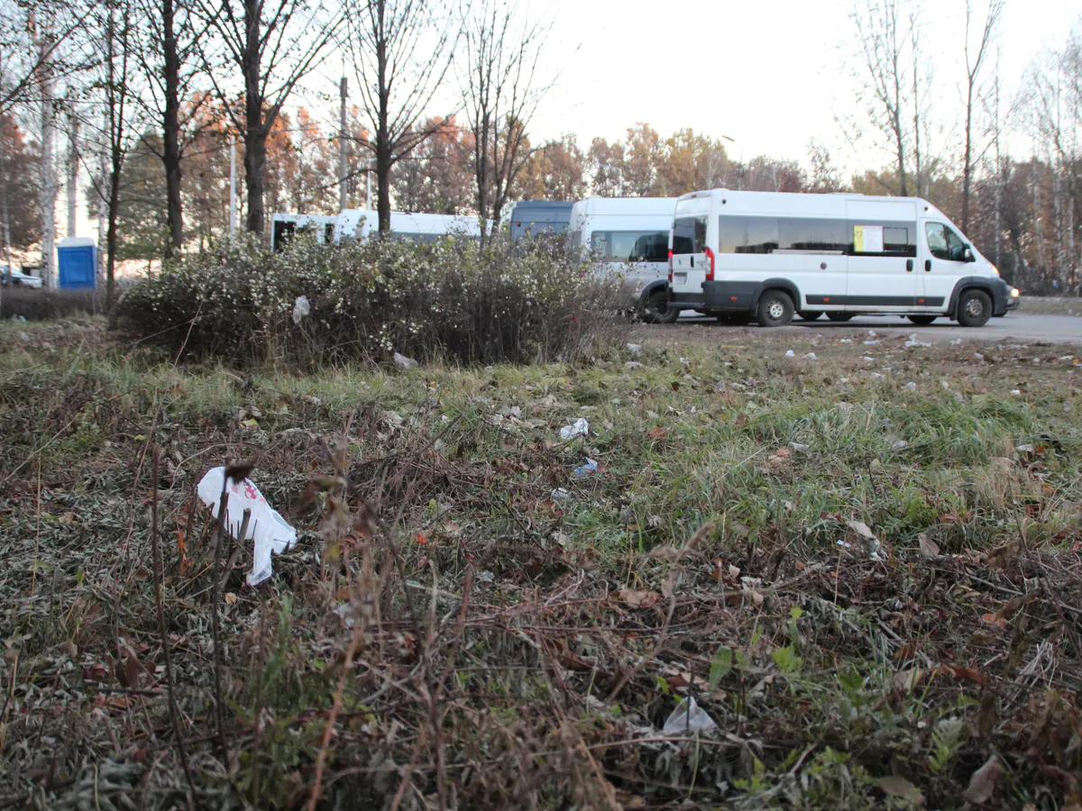 – Это наша точка стоянки. Здесь есть биотуалет и место для мусора. В основном тут валяются пустые бутылки из-под алкоголя, а мы перед работой не выпиваем. Думаем, что мусорят сами жители или прохожие, - говорят водители.