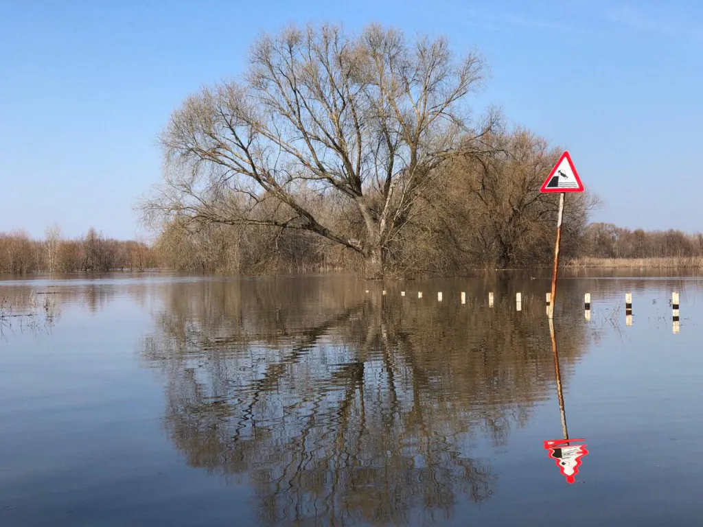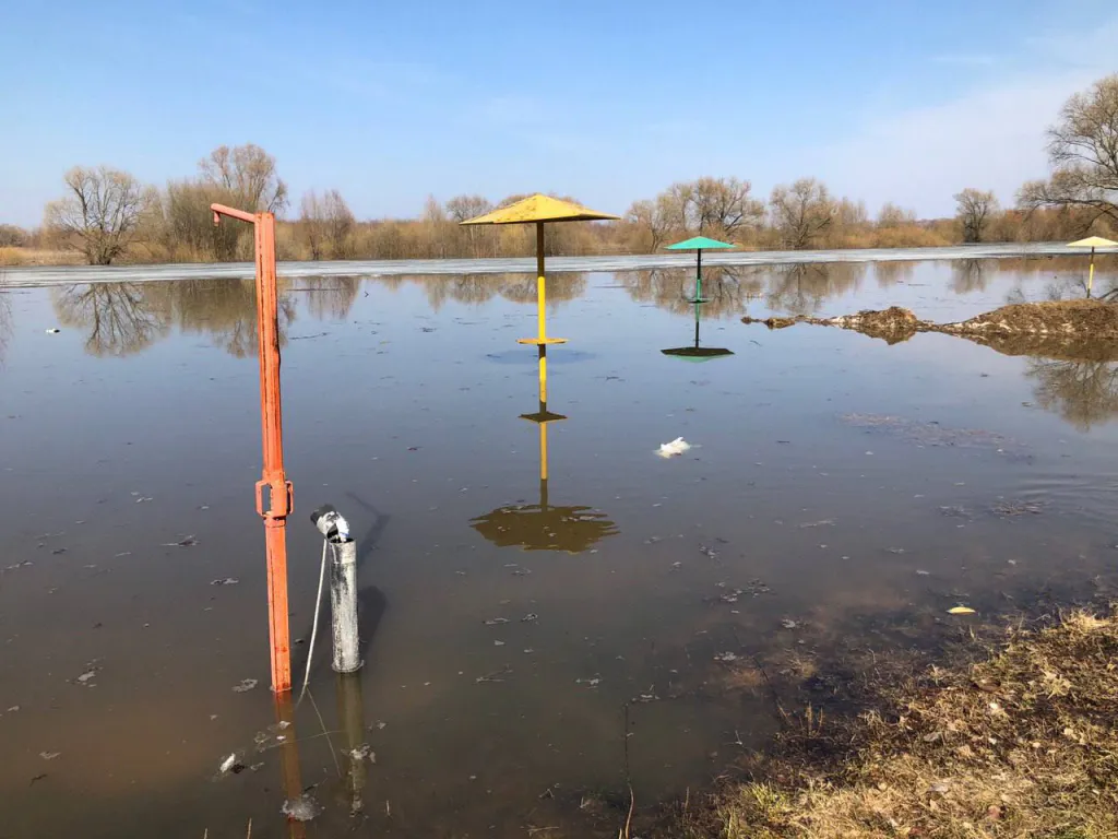 Из-за весеннего паводка и повышения уровня воды в Оке и Трубеже в рязанском Лесопарке затопило дорогу. Ушел под воду пляж на Орешке и даже центр проката велосипедов и самокатов.